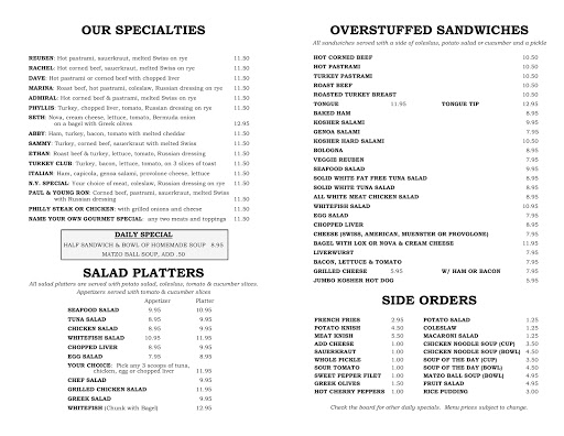This is our absolute favorite place to get sandwiches! The food is amazing and the portions are big. Sandwiches average around $9-ish, but it comes with a half pickle (NY Sour) and a small side (potato salad, coleslaw, macaroni salad, or cucmber salad ... which are all delicious!) This is a NY deli where the sandwiches are stuffed with meat!!! Definitely worth trying if in the area. Our favorites are the Paul and Young Ron (Rueben mixed with a Rachel) and the Marine (roasted beef, pastrami, coleslaw 1000island on rye) ... yum