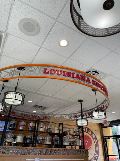 Awful service! Employee on fry machine was working and chewing with mouth open. No AC when outside temp is 82. To top off the awful experience, homeless people circle parking lot and stay close to the windows to watch paying customers eat. Anyone wonder who manages this store! It shows they dont have one. Dinner was over when a homeless man came in wearing a blanket and clown socks/red clown shoes, and walked like a sloth past all tables eyeballing everyone. Worst Popeyes EVER.