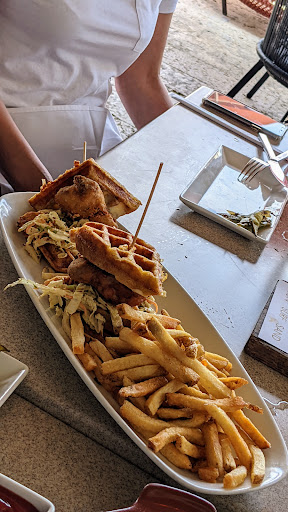 For Mothers Day we tried brunch at Sun, Surf, Sand. Our reserved table was ready when we arrived. We had 3 different cocktail drinks although good in taste seemed a bit lacking in alcohol. We wondered why our drinks had carbonated soda water not mentioned on the menu as an ingredient. We both ordered sushi nachos consisting of 4 small round homemade nachos (not the bag variety) with the various fish piled on top. It looked and tasted good. A nice starter. Our second dish for both of us was goat cheese croquettes almond crusted with guava sauce. 4 small warm freshly prepared croquettes with a creamy goat cheese center. Very tasty. We recommend for a light starter. Our third and last serving was oak grilled mahi mahi. Most restaurants serve gas grilled items. We never tried wood grilled fish so it sounded good. Both dishes arrived as very small servings of fish on a bed of a liquid that seemed like oil with a side of a high content fatty mayo cole slaw which was awful. How can a fish be oily looking and tasting oily after being grilled? Did the chef spray oil on the fish while grilling so it wouldnt dry out? The taste was weird. I didnt finish it. It was the smallest mahi mahi serving weve ever ordered at a restaurant overpriced compared to other restaurants that serve grilled mahi mahi sandwiches. S3 has other selection options than oak grilled fish. The server was ok just not attentive to refill water glasses only interested to up sell more cocktails. 3 and a half stars appropriate. Four stars may be slightly too generous.