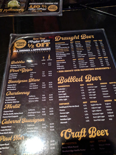 Stout has a full liquor bar, and a large beer selection. The food is consistently good, abd offers a nice variety of Irish favorites. Stout offers great Happy Hour specials. They have cozy booths, but also space for larger groups. Definitely deserves a visit!
