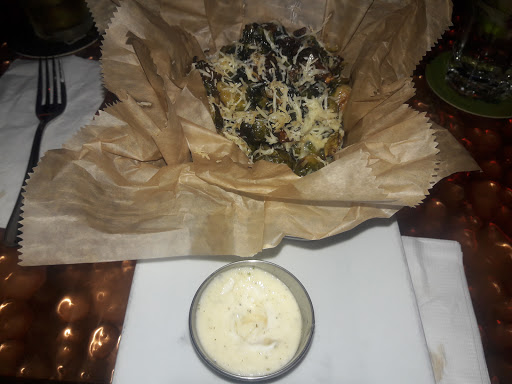 Nice decor. Interesting menu. Beers are pricey even for domestic drafts. Was pretty dead on a Sunday night. Service staff was good. Bartender was great and barrack was cool. Veggie flatbread was good, but was still hungry after eating it. Not a great location.