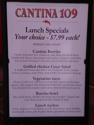 We had a party of 7 last night, Saturday. One star is being kind. The service was really bad, they were not that busy, That should have been a sign for a Saturday. The food took forever and when it did show no one was impressed. Mine was very salty, and I like salt, one was very over cooked. The server didnt seem bothered when we told her, she just gave us the check. 5 of us consider Mexican food our favorite. This is not close to "real" Mexican food, Tex Mex, or otherwise. After dinner we all decided it was our first and last time for Cantina 109.