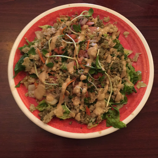 First impressions are critical to the success of a business. Repeat business is gold. As I walked into this small, dark space, I saw a woman behind the counter. I explained to her that this was my first visit to the "restaurant". Instead of welcoming a new customer, she handed me a soiled menu and rambled through the offerings. As I was waiting for my order, I watched her interact with her employee. It was rather uncomfortable to watch her reprimand the employee in front of other customers. She seemed to be so miserable. I am going to assume she was the owner because she had mentioned to another customer that she wanted to hire someone that wouldnt come with any drama. Something tells me that no matter who she hires ... there will be drama involved due to her own negative attitude. Its a shame. I was really hoping to find a great vegan hangout. No such luck.