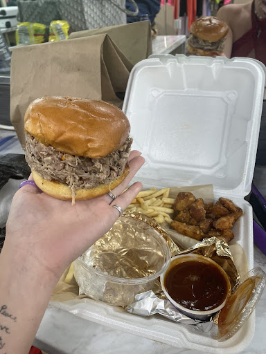 Really good pulled pork sandwich... Deep fried okra was awesome... And the employees are very hard-working but still have a smile on their face