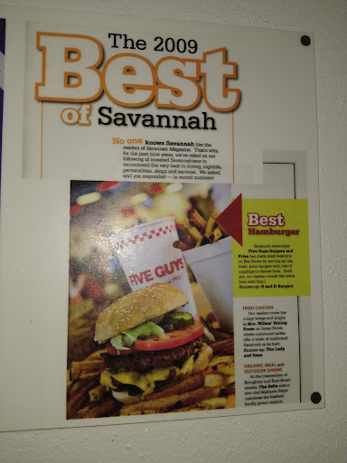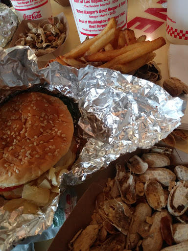Five Guys Burgers are my favorites the fries are on fire! Everything is on point with five guys friendly staff clean store I go there all the time