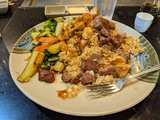 Something has changed ... Weve been several times now and this last time was not good. We sat at the bar to have a drink while we were waiting for others to come in for Hibachi. Staff was scattered and not too concerned that we were even there. Nobody was behind the bar and we had to ask for a server to wait on us. Food at the Hibachi table was good but we were served in a random order that made no sense. First we were served vegetables, then rice, then the shrimp appetizer and then our main entrée. Sauces were changed too and not as good as they were before. Not sure what is going on here or if we simply had an "off" night.