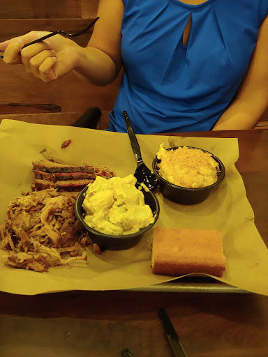 This place is decent. Its supposed to be great according to reviews and awards but I wasnt blown away. The sweet tea tasted like sugar water, there was no tea flavor at all. The mac and cheese was AWFUL. Soupy, flavorless mush. No matter how much salt and pepper I put on it I couldnt eat it. It didnt even really taste that much like cheese. The best part was the BBQ and the coleslaw. It was pretty good and I might go back and just order different things. They were out of brisket and that seems to be the best thing they have so Ill give it another shot to find good brisket. The staff was super friendly and knowledgable.