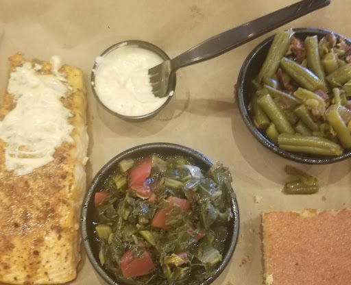 I would have given another star except that the meats were only slightly above body temperature. Cheese in the jalapeño sausage hadnt even started to melt. The meats, pulled pork and sausage, were otherwise tasty. The fries were hot enough and good but I didnt see ketchup (I like it better than vinegar on fries) anywhere. The barbecue sauces were just OK but I expected much better. The corn bread was very good. The servers were very nice and friendly, great help. I would go again except that I like my cooked foods hot, at least 130 degrees or so.
