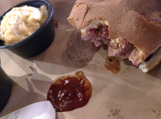 Excellent smoked meat - the brisket and pulled pork are terrific. The dine-in experience leaves A LOT to be desired - the concept of dining in a mess hall is not exactly appealing to me. Thankfully, they offer take-out, so I can eat in a more relaxing venue, like my desk at work. Prices are more than fair and portions are, well gluttonously large, to be honest. Its a good thing the food is so good, because these guys support our troops so dang hard, I couldnt give them a bad review if I wanted to without being accused of being a terrorist.