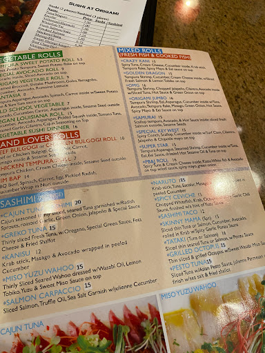 Origami has a broad menu of Japanese and Korean food with a laid back, clean atmosphere and friendly and prompt service. Front sushi bar is great for food and drink happy hour and back restaurant is perfect for a sit down dinner with friends or family. I stopped in after arriving at the Fort Myers airport craving fresh sushi and was not disappointed. I will definitely be coming back!