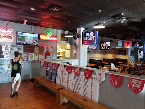 Great place to relax and unwind, they have the Playmaker games (I played Texas Hold Em) and full bar. Smoking allowed at outdoor tables and 2 pool tables also outside. Wings gross, though. Every time Ive had wings there they seem undercooked and "mushy". Monday nights can get a FULL rack of ribs w/2 sides for $10.99!! One big problem... during NFL Sundays when Pittsburgh playing, EVERY SINGLE TV had Steelers game on and the staff refused to place even ONE TV on another game....