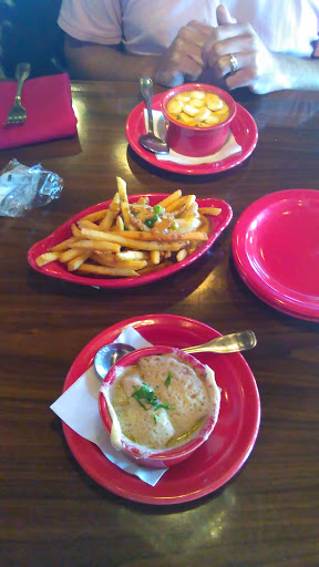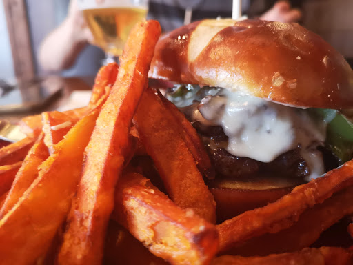July 2017 Came here on a date with my girlfriend, and we got Steven B., as our server and he was excellent. Really knowledgeable and very pleasant to talk to. The burger was excellent and cooked medium well, just the way I had requested. I had the Triple Mushroom Burger this time and I really enjoyed it. Much better experience this time, and Im upping the star count. Thank you. May of 2016: Stopped here to meet a couple of friends before work. I ordered the Rise and Shine Burger with fries and a sweet tea. The burger was tasty, albeit greasy; The bottom bun was soaked. French Fries tasted good as well. The sweet tea was weird. I dont know how else to describe it. It tasted sweet but had the consistency of chocolate milk. When I first took a sip I thought it was chocolate milk. It wasnt bad tasting. It just wasnt what Im used to. As far as the service goes, we got a polite gentleman, but I think he was new, or they had a call out or something. It was busy, however when the manager had to come out and start apologizing to 3 of the guys tables for the long wait, including ours, we figured something was up. We didnt complain. Cant speak for the table next to ours as the manager had to take care of them for the duration about 10 minutes into them sitting down. To summarize my bad marks on the service: forgot my sweet tea. Forgot my friends baked beans. Friend also ordered sweet potato fries and was given regular fries. He also wasnt on top of getting our refills as my friends had to both sit with empty glasses for about 10 minutes. The atmosphere and the taste of the food managed to get a few stars out of me. I work in customer service, so Ill chalk it up to being understaffed, a call out, or the waiter being completely raw.