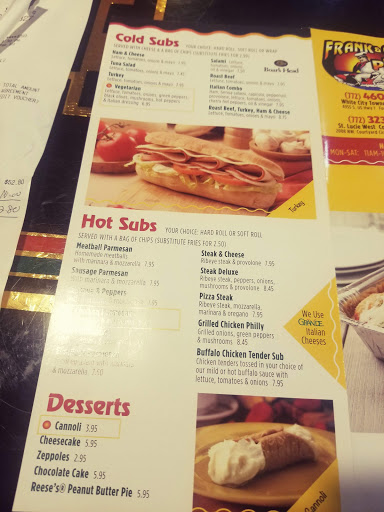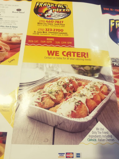 I love to eat out, and i eat at frank & Als in Fort Pierce at lease twice a week, They do have the best pizza in Fort Pierce and the best Chicken Parm sub, the price is fair and the services is fair.