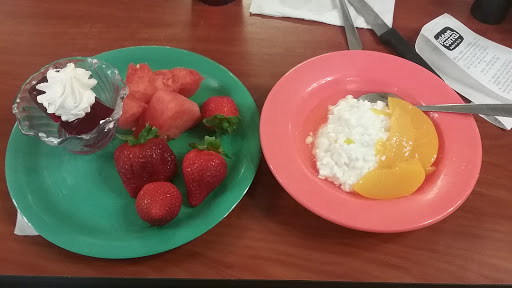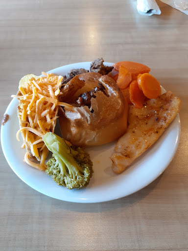 The only thing good about this trip was the server(Donna). The plates and silverware were not fully cleaned, employees were eating food in customer sight. Steak was so burnt it was from leftovers as we were there at opening. The tables were dirty when we were the first ones to sit on that side. Observed a gentleman in a station stirring food but did not have a hair net for his beard nor gloves on.
