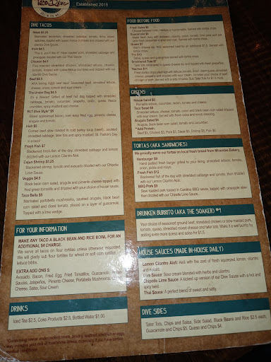 Taco Dive is far from a dive, however, it does have that casual and welcoming feel that you look for in a dive bar! The four of us started out with some of their craft beers on tap along with FRESH MADE tortilla chips baked to a light and crispy perfection. Seriously, get the chips. We also got the guac, queso and salsa trio which was terrific. I ordered one Cajun shrimp taco. The shrimp were marinated and cooked perfectly. I never wanted the taco to end. My mom ordered one fresh fish taco which was a drum fish I had never heard of. It was blackened and amazing. She said it couldnt have been better. My dad got one Irish taco which consisted of corned beef slow roasted in cold barley soup, sautéed cabbage, tater tots and spicy mustard. He didnt talk much due to a massive food coma. My boyfriend got 1 steak taco and 1 fresh fish taco. He joined my dad in his food coma. For lunch, chips and 1 taco was perfect for 3 out of 4. Go for 2 if you have a bottomless stomach. I guarantee that youll ring the bell on the way out!