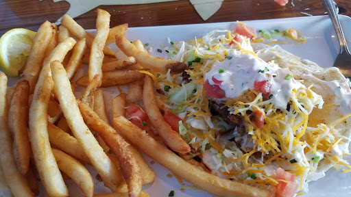 Good chicken fingers. Price is high but great place and great people. Kids can buy fish food and feed fish off boardwalk. My daughter loved this. Would suggest you bring some dry kitten food instead of buying the little bags from tiki. Nice open eatery. Alligator came and caught a fish while we were watching. Very exciting. People working here are awesome!!!! Just wish it was a little...well a lot less expensive. Also water is not good there but most people are drinking sodas or margaritas. As long as you limit your food prices you can have a great time. They also have live music on occasion.