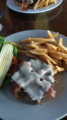 We have been here twice and I enjoyed the food both times (and I am a very picky restaurant goer)! I expected regular bar food but theirs was a little bit more "elegant" and well cooked than I expected. A little pricey but not outrageous. Atmosphere is nice, it was busy on a Saturday afternoon, lots of families. Band was kinda lame. We will be back.