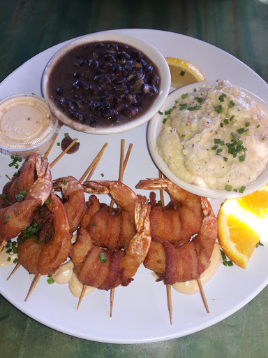 Amazing service and great family atmosphere. You can feed fish from the boardwalk while enjoying great music. My wife had the sweet potato encrusted hogfish salad and I had the blacked shrimp and grits. Both meals were cooked and prepared to perfection. Whenever we are in town again we are definitely going to come back and eat here. Great times!