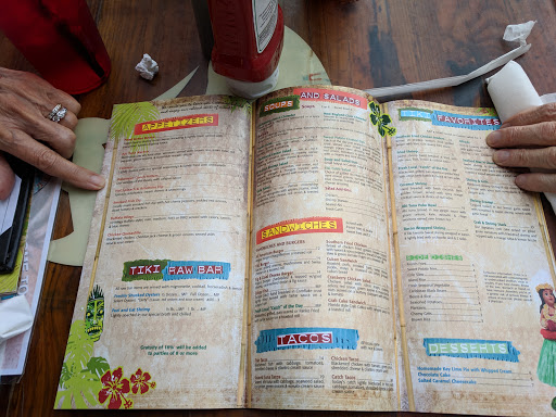 This place is nasty. When the wind blows, the tiki material falls all over your table and into your food. If you are there when it is raining, hope you dont mind getting wet. The servers there call it the leaky tiki. The young female manager is very unprofessional. She is poorly dressed and has a pierced tongue. Because of poor management their food cost is high and thus the menu prices are as well. One time when I was there the servers were having a massive argument. They were in the middle of the restaurant screaming and cursing. One girl even walked away crying. Big miss for me. I will never be back.