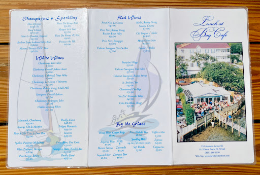 April 20, 2010 The Bay Cafe was recommended as a "great little french cafe", by a retired cardiologist who is also an avid fisherman. We found a wonderfully quaint restaurant nestled on the bay with exceptionally good cuisine. The service was impeccable, the food, as good as can be found anywhere along the Gulf Coast between Pensacola and Panama City and the atmosphere a cozy elegance. We enjoyed a smoked trout appetizer that looked as though it was prepared on the premise, not shipped in and with a flavor one would expect to find only in France. I had the grilled cobia with a chilli lime sauce that was magnifique. My wife dined on a wonderful grouper filet topped with an artichoke sauce that was equally delightful. Highly recommend you try for yourself a truly great little secret in the Fort Walton Beach area. Bon Apetit!