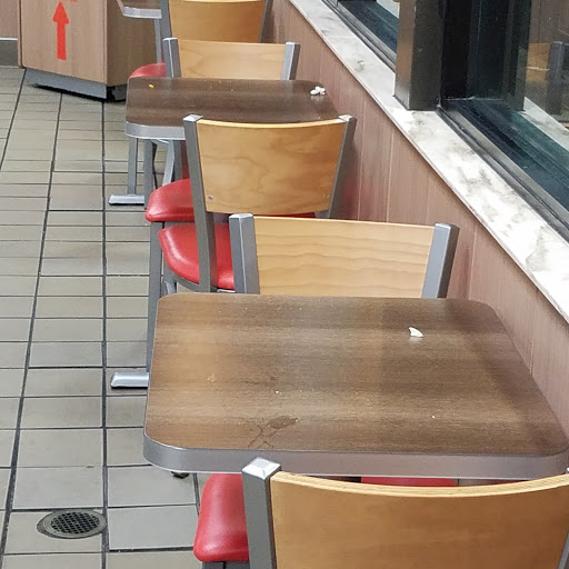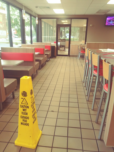 I see sketchy people in and around this establishment ALL the time. Not to mention that rowdy children that like to stop by here after school to do their homework. The business has recently gone under new management, (thank goodness) so hopefully it starts to improve. But I went in the other day and saw some homeless guy who had been inside for hours. (There always seems to be homeless people in here.) The food itself is about average; nothing worth dying over for sure. The only reason I really stop by is because they send me pretty good coupons in the mail, and I like being able to save a buck here and there. I DO NOT advise using the restroom here, it smells like youre in a sewer, the door handle is broken, and theres trash all over the floor and sink. This makes me worry because if the bathroom is this dirty... then what else do they not clean? Should they be preparing food?