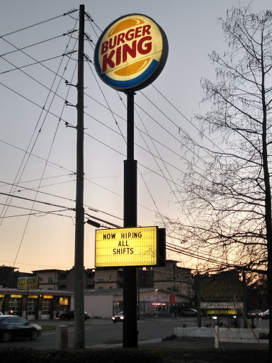 I went here to eat with my wife and kids. I walked in, and there was no one there, except burger king employees sitting at a table having a good ol time. I look around, and the place is a disaster. Dirty tables all over! Went ahead and ordered so the kids could play. We got to the play room, and everything in there is just sticky nasty filthy. We then go to get our drinks; and the machine was nasty. I fill my drink and go to set it down, and theres nowhere to set it. The counter was nasty with spilled drink all over, and it was also sticky all over the counter. Like drinks had been spilled and never cleaned. Just dried up. It took a little while for our food to come out; a little longer than usual. We get our food and expect some warmth being it took a while, thinking it needed to be cooked, and it was oooooollllld. This place was in bad shape/management. With all the dirty tables and all the employees sitting around, standing outside smoking, their regional needs to know about this. Ill post some pictures I was able to take, one of them being employees out smoking.