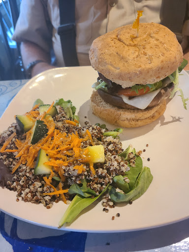 Amazing meal! We had the grass fed burgers and the flavors were so intense we didnt need mustard or ketchup. The sprouted grain bun wast dry. The blueberry and lemon infused water was a treat. We felt really good about everything we ate. Super friendly and fun owners, relaxing environment. We fully enjoyed ourselves.
