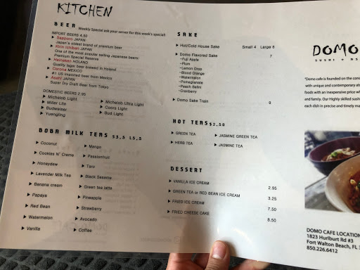 The food at Domo is always very fresh and delicious. The boba and sake here is also very good. My personal favorites are the sesame shrimp rice bowl and the shrimp tempura upon bowl. They can be a bit slow at times so if you are placing an order to go you definitely need to call well in advance. In addition to this, its very difficult to locate a menu online and they dont have any menus that you can take back home with you.