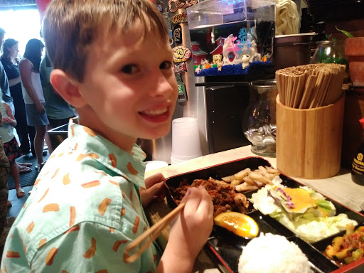 The only complaint I have is that I cant rate this place more than 5 stars! I cant believe its taken me so long to come here and eat after all of the positive reviews Ive heard about this place, its stagg, and its food. Im a huge anime/gamer nerd so the name "domo" immediately stuck out to me. You walk in and the theme is anime themed (the bathroom has bleach and Naruto posters in it!). You walk in, make your order at the register, pick out your drink from the cooler and find a seat before the influx of the ENTIRE TOWN comes in. The food is phenomenal (best beef bulgogi Ive had in years) and their service and staff is on point. Great job guys! Me and my hubs are new regulars!