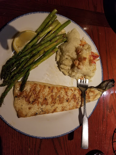 We had a very disappointing experience here while on vacation last week. It started when we walked in and the hostess team openly discussed sitting our family away from all the other patrons since we had 4 young kids. Trust me, I understand the need for keeping small children from being a disturbance and I am fine to sit in a secluded area, but you dont have to discuss it out loud in a rude attitude upon my arrival. My grilled fish was tasteless and my husbands steak was over cooked. They did take his meal off the bill. The service was extremely slow since we were the only occupied table in the room. The waitress was tending her tables in the other room and only got to us every once in a while. Overall, I love Red Lobster, but this is one location we will not visit again.