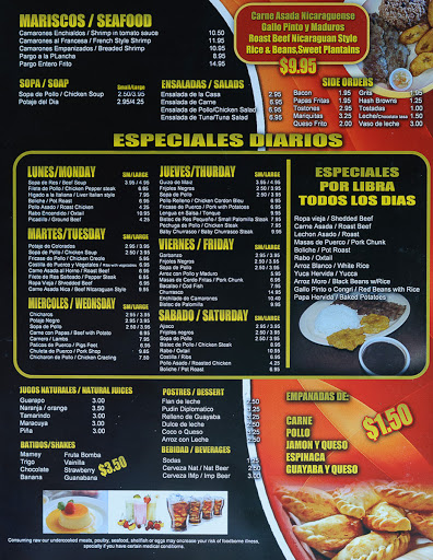 $3.95 breakfast! -2 eggs -ham or sausage -hash browns or fries -tostada -cafe con leche $3.95 during the morning. $4.95 for the rest of the day.... Who cares! This deal is awesome!!!!! All day breakfast for under $5!!! The only thing is that if the bill is under $10 it has to be cash. This place is incredible!