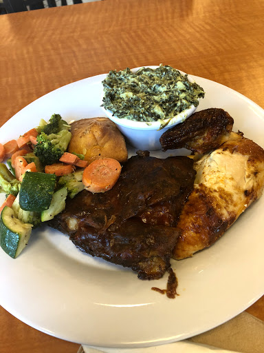Chicken was tiny and dried out, ribs were burnt and even the chicken inside of the pot pie was hard as a rock..horrible!!