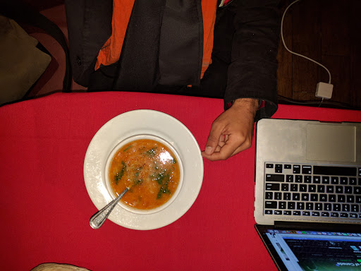Was there Saturday night for dinner. Sat outside. The service was outstanding, the wait staff and manager could not have been nicer. We opted for the Romanian menu. The manager came over and explained the items and made suggestions. Started off with the pickled veggies and roasted peppers. Very good. I had the minced pork and cabbage, buddies had the lamb and the goulash. All three were amazing and the portions were huge. Dessert was a donut like cake with cream and cherry sauce. I am not a dessert guy, but could not stop eating it. I highly recommend this restaurant.