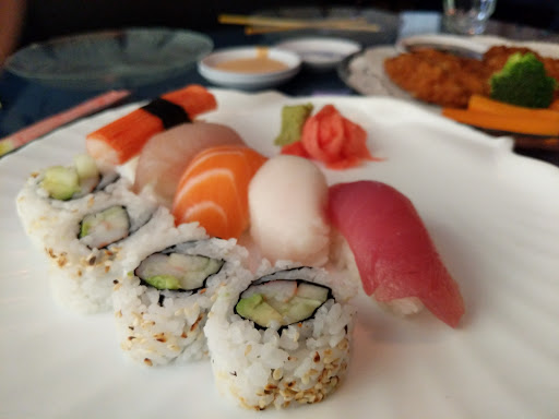 Honestly voted worst Sushi to date for both my girlfriend and I. We eat sushi regularly. I eat anything. Couldnt do it here. Rice taste like it may be old and not seasoned well. Dynamite was horrible. Tasted like bland cut up scallops. Didnt get cutlery for my sons steak until it had been on the table 15 minutes. Asked for medium steak it was barely seared had no flavor and tasted like someone just poured bottled sauce on it. Rolls were large and uncomfortable to eat and obviously made with the same old rice. Asked for green tea got black. Must say though. Gyoza were the best I ever had. I dont know if it was a fluke night or not but I dont think Id be willing to find out.