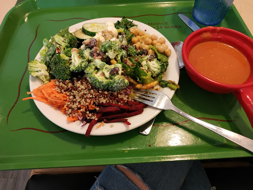 Lots of good vegetarian options here, and for a bad vegetarian like myself, plenty of carbs and sweets to munch on too. This location though is very sticky. I honestly dont think theyve done any renovations for at least 5 years here. Also always surprisingly expensive for what it is. Take the good with the bad and get your moneys worth.