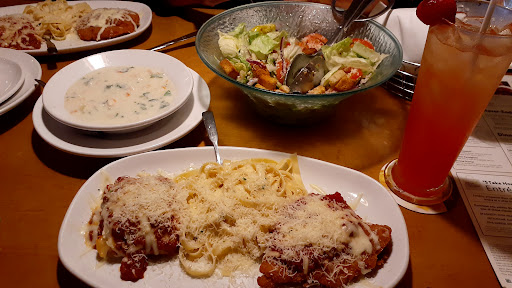 We had few options around but we choose to go to Olive Garden. I wish we had chosen another one. I am vegetarian, but they did not had any option other than pasta (without vegetables) or pizza. Ones in Houston makes veg option for you. But in this one i ended up ordering pasta which was very hard to eat. Waitress could have added vegetables instead of meat but she did not. Pasta was not at all edible since it was just boiled pasta with tomato sauce. I ended up going to another place from here. Will not go again.