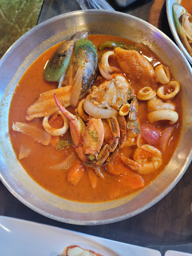 El lugar regular la atencion regular y la comida horrible pedi pulpo al ajillo y envez de pulpo te dan cabeza de pulpo q asco pedimos ceviche de camarones estaban horribles lo unico regular fue la sopa le me queje con la camera y no le importo dejamos toda la comida sali con nauseas y ganas de vomitar que clase mala experienc nunca me habia pasado esto en ningun restaurante y Los precios caros para la la mala calidad de comida horrible horrible esto fue hace 10 minutos