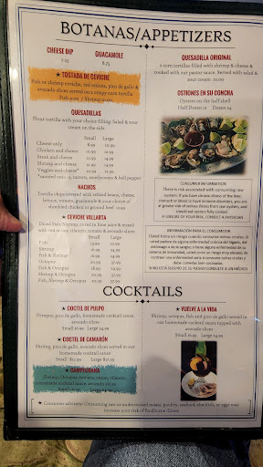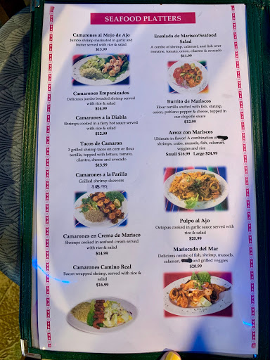 Absolutely delicious seafood cocktail. Very good seafood soup. The burrito is serious comfort food. The enchiladas Verdes haunts my dreams. Lol. This place made us actually like (love) refried beans. They have a cilantro rice that tastes different every time we have gone, but it is always good. They serve Pico de Gallo with chips instead of salsa and its very refreshing and tasty. They have very large margaritas, which are a LOT OF fun, especiallyif youre with a group of friends. I really love this place. I am grateful to have discovered it Try the house hot sauce at your own risk. I swear, it gives you a buzz
