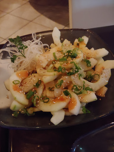 Had a quick lunch on Fourth of July. We both had the Bento Box, one sushi one sashimi, both had soup and salad and pieces of California roll. Included was a piece of a fried mixture of fish and vegetables that was quite good. Was just under 40$ including one soft drink and top. On top of the good food, the restaurant is very pretty inside.