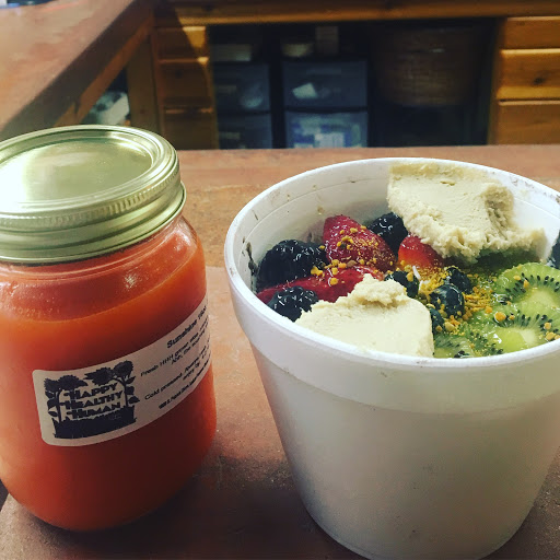 Juice bar, smoothies, vegan Cafe, organic produce, and some locally made boutique items. We love HHH.
