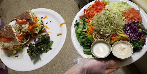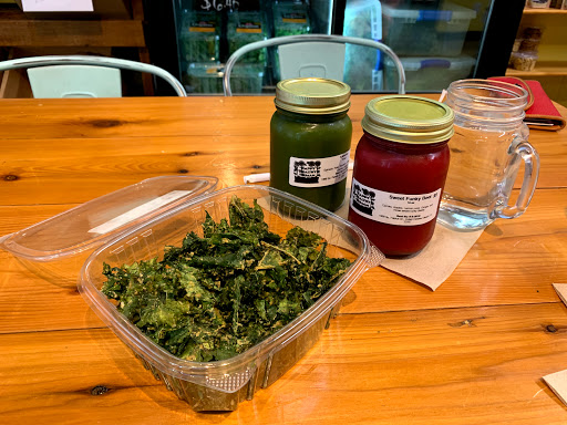 I ate here for the first time today, and WOW! What an amazing experience. The food was so tasty, the kale chips were fantastic. I had the Human Sandwich and it was one of the best dishes Ive ever had. I also had the Sunset juice drink. I left feeling super-healthy and happy! Karlette was our server and made the whole experience more enjoyable. Shes so knowledgable and was able to tell us about every dish in detail. I always appreciate that in a restaurant of this type. I bought a jar of local honey and I will definitely be back! Im so glad to have found this little gem!