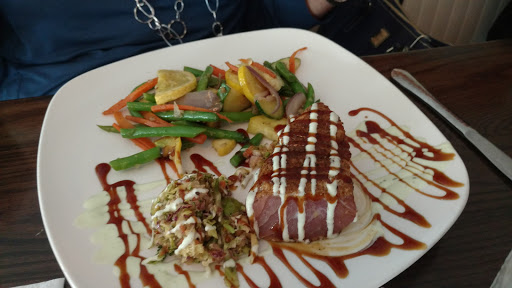 Lunchtime business meeting for Simple Weddings. We periodically stop in to the restaurants and locations we recommend to our clients so we can be sure we are giving informed, quality recommendations. This is a large, nicely appointed restaurant in IRB. Outdoor patio is a nice option for al fresco dining, but it does need more landscaping to obscure the fact that youre facing the parking lot. House Caesar was a little too heavily dressed, and my medium rare chimichurri steak was more medium. Our server, Sierra, was friendly and attentive and kept our drinks filled. The manager, Donna, also checked in at each table to make sure customers were satisfied. No beach views (which is the norm in IRB), but the dining room is lovely, service is friendly and timely, and the ambiance is warm. Prices are typical for this area on the beaches, with lunch for two costing just under $40 with tip (the price for coffee always shocks me in this Starbucks age. Especially since I spent a few years in restaurant and bar service, so I know the markup).