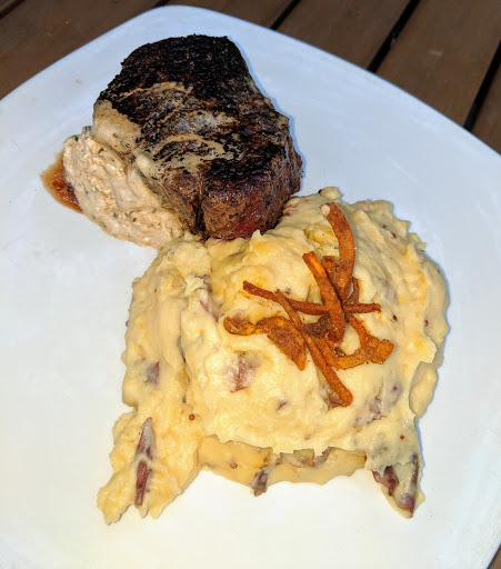 First, we showed up late because of my wifes grandmother. They ended up cancelling our reservation. They must of understood my plight as we walked in with 3 seniors over 80 and a 21 month old toddler because they got us a table. It was even outside! The service was head and tails above what I expected. The food was great! My wifes steak was perfectly cooked and delicious. My Blackened Shrimp and Scallops tasted great. Its a dish I would get again. The beer list was just okay but this seems like a place for a good mixed cocktail.I didnt expect a large list so I wasnt very disappointed. My wifes martini was the best she had on vacation, according to her. The prices are a little on the high side but for the service and quality of the food it seemed worth it to me. If you know me you would know that I dont like expensive upper class restaurants but this one was fun, tasty and satisfying. You wont regret having a meal here.