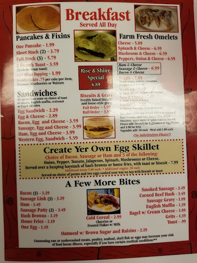 I love this restaurant because of the down-home cooking and atmosphere. Its very cheerful and bright inside with wonderful service and very reasonable prices. Its usually fairly busy, which is a good sign that its a great place to eat. We only had to wait about 10 minutes one time because we had 9 people in our party. My husband loves the Reuben sandwich and I love to get the mexican breakfast wrap!