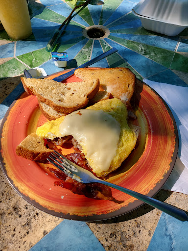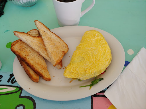 A must stop gem for breakfast! Warm, wonderful folks serving excellent coffee (free refills), accompanied by a great breakfast menu. Eggs can be prepared any way you desire, whether it be a simple "over easy" or an overstuffed wrap filled with vegetables and meats of your choice. Uplifting, colorful decor also helps to start your day off on the right foot. There is ample parking on both the Old Highway and on US 1. Enjoy!