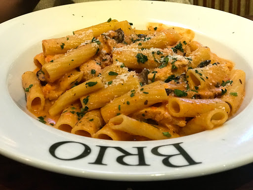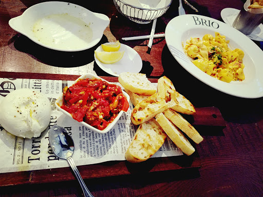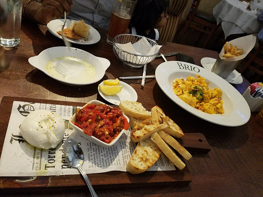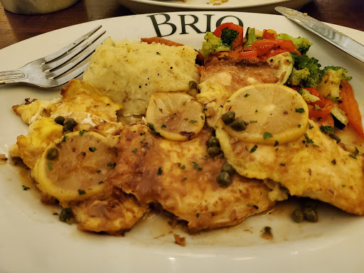 The food is outstanding. The restaurant is beautiful- very open and inviting. There was a good amount of room between each table. Our server, Eve, was wonderful. She was knowledgeable and gave great recommendations. I felt, for a Tuesday night, that the kitchen was pretty slow. It took 2 hours to eat from start to finish and we ordered apps, drinks and entrees fairly quickly. Ticket times seemed to be well over 20 minutes. Luckily when we received our meals, they were hot and fresh. The portion sizes are enormous! We started with bruschetta sampler and calimari (you can tell the calamari wasnt fresh, but it was good) I got the chicken limonne with the herbed pasta- omg! sooo good! i hate leftovers and today I was all too excited to eat this meal again( my husband was very upset that I didnt leave him the rest). One disappointment was the runners. They dropped off our meals on a large tray and just left them there. I dont know if it was server preference to place meals in front of the guest? Ive just never experienced that (both in my own serving experience and eating experience). Overall, I would recommend Brio to others and plan to return to try the carpaccio app and the chicken under the brick.