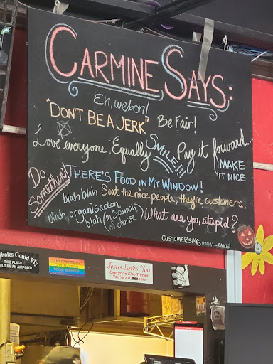 When you first experience Carmines you may think that you are one of the first to discover this little hidden gem tucked back in a corner of Riverside... until you see all the rave reviews on Yelp and realize that you may be the only person who HASNT been going there for years! Ive recently been trying to correct this error. My coworkers and I have been going to Carmines almost every Thursday evening now for a few months. Weve made our way around to most of the hip food stops in the area but its really hard to pull ourselves away from Carmines now that weve discovered it. Its hard to beat incredible, fresh, hot pizza, especially when it is at these super cheap prices! Our routine is pretty much the same every time we go: grab a table outside, Phineas comes and shoots the breeze with us for a minute (and he remembers our drinks every time), and we each order 2 slices of the New York thin crust pizza. There are a ton of mouth-watering options on the menu that I keep telling myself to try but its hard to stray from the cheesy goodness of those slices, especially when they only cost like $2.50/slice for a piece thats enough to stuff a grown man. I usually get a bit crazy with my topping choices and have never been disappointed but my friends always get pepperoni and mushroom, which I can also highly recommend. The best thing about Carmines is that it is one of those places where you just feel like you belong - like the bar on Cheers, "where everyone knows your name". Of course, not everyone knows my name here, only Phineas, but it still feels like they would if I wanted them to. I cant recommend this place highly enough. Its one of those community businesses that is popular for good reason. Once you try it, youll go back time and time again!