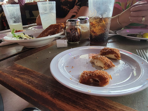 Upon entering for Sunday lunch we were very happy with the atmosphere and were seated immediately. Went down hill from there. Our drink order was taken as we were told our waitress would be with us momentarily. The same person brought our drinks a few minutes later, still no waitress. 20 minutes after that we finally met our less than compitent waitress. We ordered the Greek Island Salad and a Large Cheese Pizza. The first thing I noticed about the salad was it was missing the Greek Peppers and was mostly lettuce which I was not expecting for $8.50. I asked the waitress about the peppers. She went to the kitchen only to return to say they were out. I would have liked to been informed of that when I ordered. Perhaps I would have chosen a different salad. I feel they should have offered a discount on the salad as it was missing an ingredient. Other than that it was just ok. The Cheese Pizza $15, which I admittedly had high expectations for was another disappointment. I have never been a fan of Corn Meal dusting the crust (like Dominos) and it was overcooked to the point that large areas of the bottom were dark brown and black. I do not like to and I did not complain as I am not looking to get a free meal. However, at this price point I expect quality, which I did not receive. We will NOT be back.