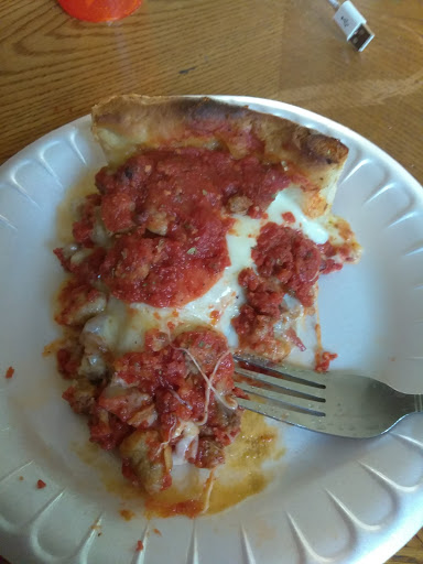 Usually Im very happy with Chicago Pizza, however today was a huge let down. We get there around noon and sit outside. We waited for almost 15 minutes before we were acknowledged. She apologized saying she "has like 8 tables" The waitress didnt want to take our food orders then and insisted on bringing us our waters first- well that took 5 minutes. She takes our orders and we dont see her again. I had to go inside and ask where our food was. It took 25 minutes for a sampler with wings, 2 mozzarella sticks, 2 potato skins and 2 chicken tenders. The wings werent what we ordered, they were just plain. the tenders didnt have any dipping sauce. After the sampler arrived it took another 10 minutes for our food to arrive. By this time my break was over and I had to leave, I asked for a to go box and my boyfriend gave her his card to pay.. she took so long, I gave up and went back to work and left him siting there waiting. I walked through the Landing, back to the office, waited for an elevator and 11 minutes later my boyfriend texted me and said she just brought the to go box and my receipt. That type of service is inexcusable. Most likely wont go back there