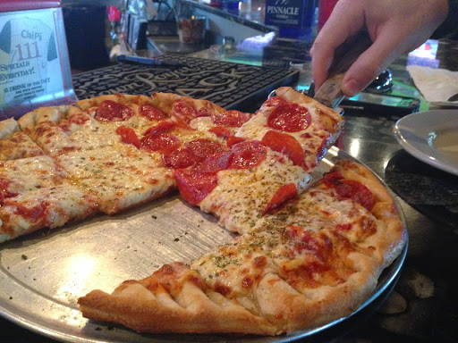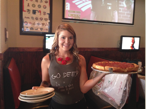 I actually used to work here but quit because the servers ONLY get their cash tips and get nothing from the credit card tips, they go straight to Chicago Pizza. Im really not doing this because Im a disgruntled employee or anything, but people should really know how disgusting this place is. Sometimes I would literally feel bad bringing out peoples food because it was literally "icky". All of the servers make all of the salads with their unwashed, ungloved hands. They say nothing about wanting employees to be clean and just show you how to grab all of the food with your bare hands. Most of the people working there are teenagers/college kids who are stoned most of the time and occasionally drunk because if you are friends with management/bartender, the bar is open to you. Just as a fair warning, most of the servers will eat fries or nachos off of your plate before it is even delivered out to you. Oh, and have you been in recently and smelled the smell near the front entrance? Yeah its because the sewage goes under the pipes and you can ALWAYS smell it. Last thing, they are RIPPING YOU OFF. It is completely overpriced for what it is and any time you generously tip a server when paying with a credit card, they dont see any of it. You would get more for your money if you just ordered more food instead. I would never put anything from there in my mouth ever again the kitchen is deplorable. Just a warning!